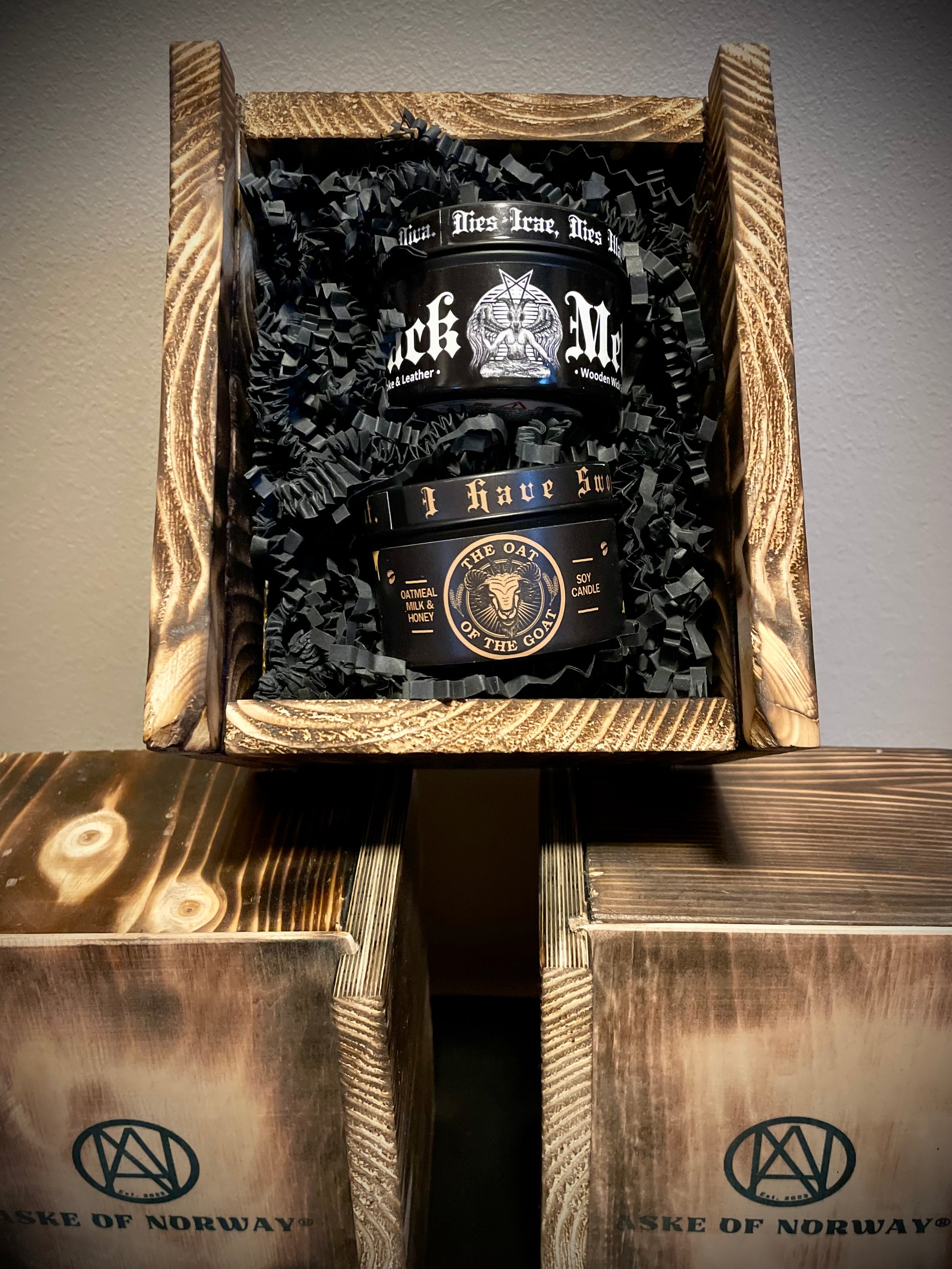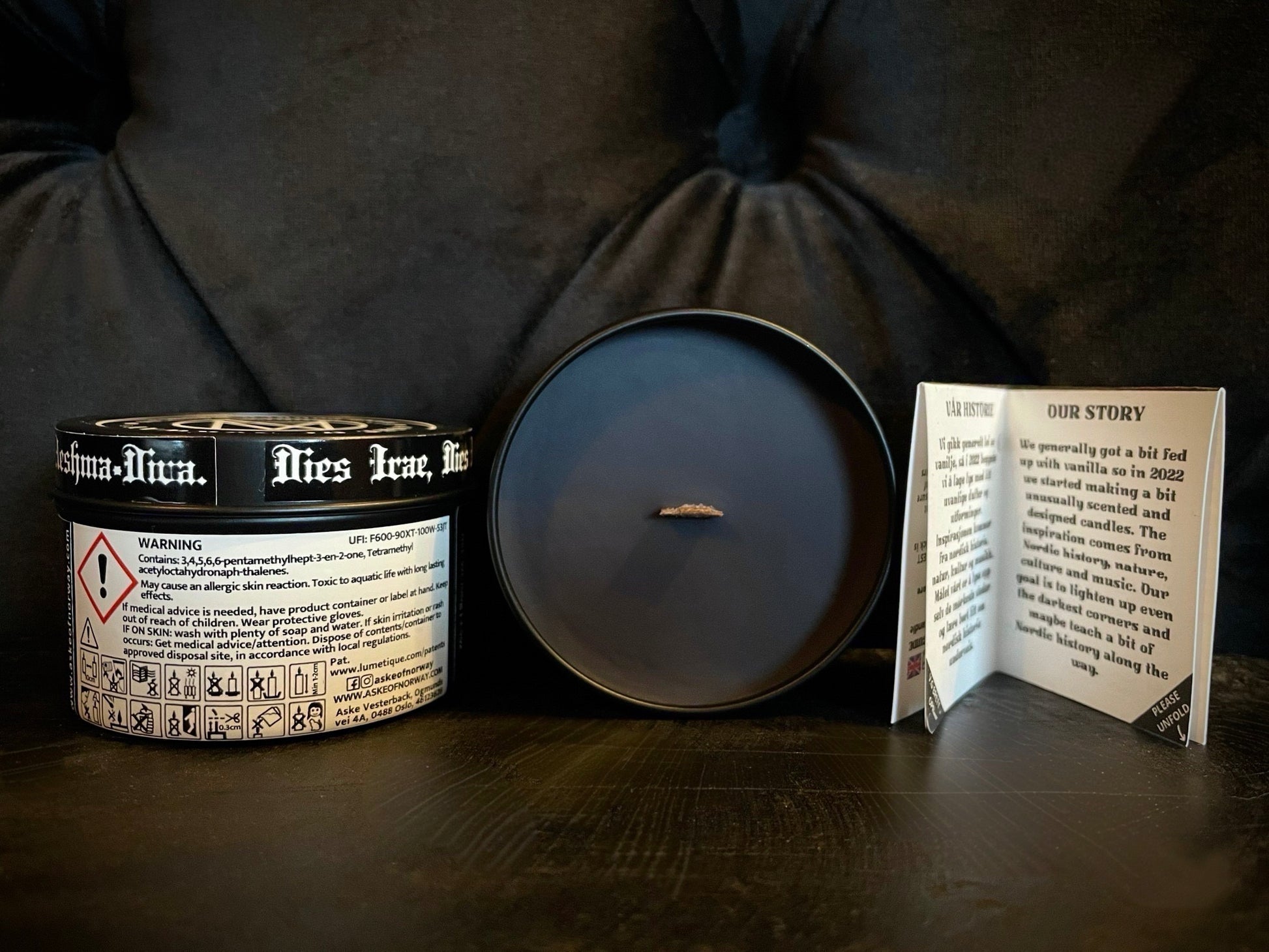 Black metal can(dle), It had to be done! Wicked with a crackling wooden wick for your pleasure.